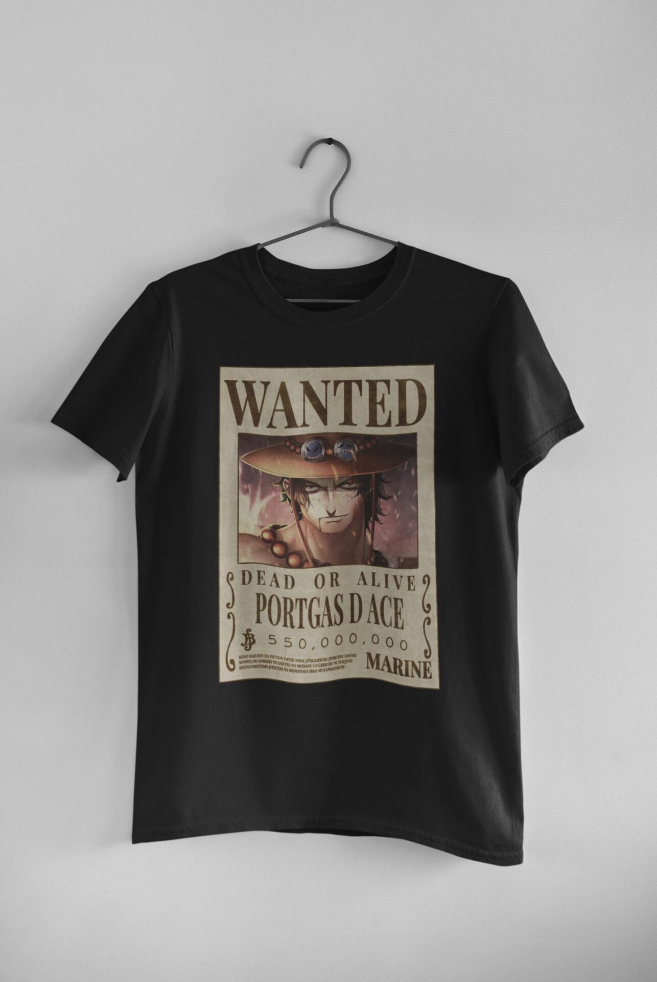 One Piece Wanted Portgas Ace Anime T-Shirt For Men Half Sleeve